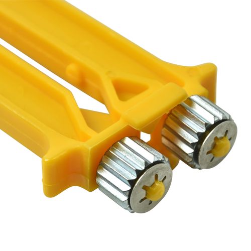 LagerstatusArtikelnummer602357ProducentWillabEgenskaberTrådstrammer med gult plasthåndtag, der strammer tråde, der er blevet slappe, ved at tråden bøjes og dermed strækkes. Forsynet med et grebvenligt, skridsikkert håndtag i gul plast. Enkel konstruktion, der holder rammetrådene opspændt. De massive stålhjul bøjer tråden effektivt, hvilket gør at tråden strammes. Rul tråden ved at klemme tråden fast mellem hjulene og træk langs tråden. Gentag proceduren indtil tråden er godt opspændt.