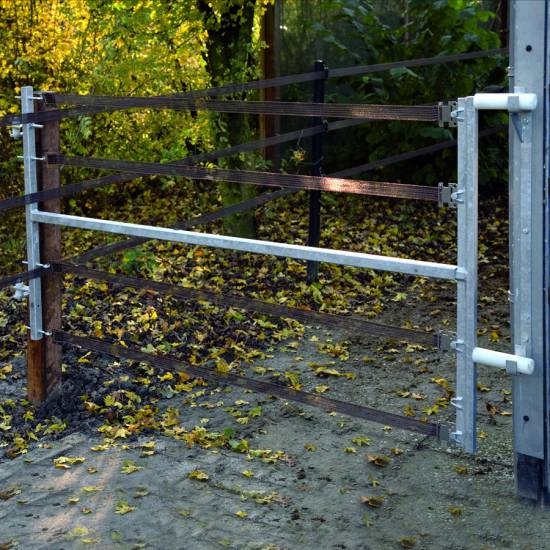 - Egnet til permanente hegnJusterbar elport. Egnet til permanente hegn. Højde: 1m Bredde: 2,5-4,5m. Kan anvendes med eksempelvis Equifence, bånd, reb osv. - I produktgrupper