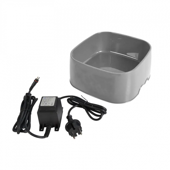 Skålen klarer ned til – 20 grader i rolige forhold og holder derved vandtemperaturen på 10-15 grader. Indbygget termostat, der starter, når den omkringliggende temperatur er ca. 3 grader. Rummer 3 liter og står stabilt på en bred bund. Vandtæt transformator, IP68, og ledning (totallængde 3,2 m, hvoraf 1,2 m kontakt-transformator) medfølger.TILSLUTNING: 220V