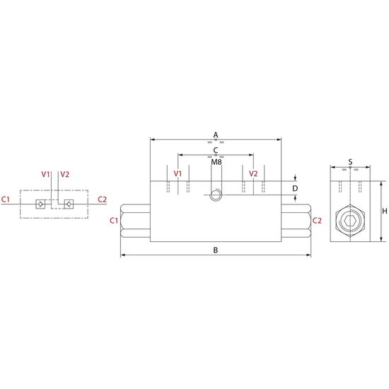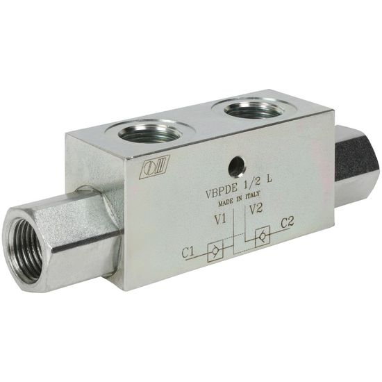 Max. tryk: 350 barDobbelt låseventil, hvor driftstrykket på den ene side åbner den låsbare ventil på den anden side.