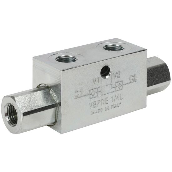 Max. tryk: 350 barDobbelt låseventil, hvor driftstrykket på den ene side åbner den låsbare ventil på den anden side.
