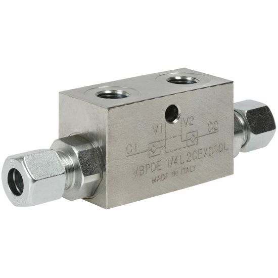 Maks. tryk: 350 barDobbelt låseventil, hvor driftstrykket på den ene side åbner den låsbare ventil på den anden side.