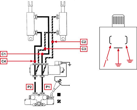 Maks. flow 50 l/min- 6/2-ventil (såkaldt vælgevensil)