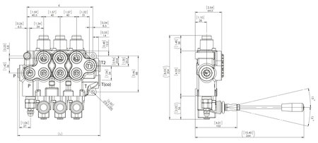 2x dobbeltvirkendeElstyret retningsventil med justerbar sikkerhedsventil. Ventilen leveres med håndtag.