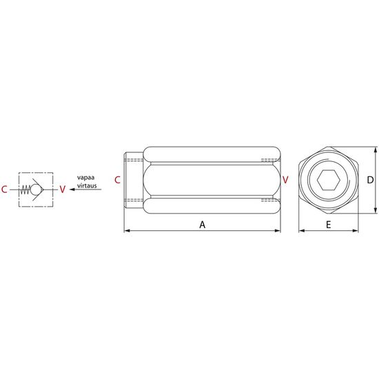 Maks. tryk: 350 barTilbageventil der forhindrer strømmen i den ene retning og tillader fri strøm i den anden retning.