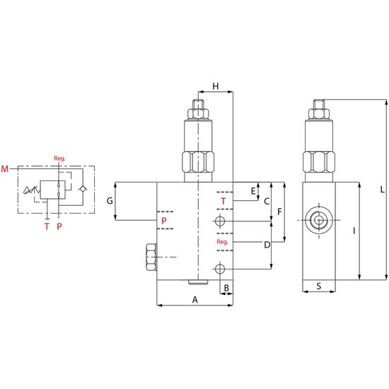 Indstillingsområde: 30-165 barTrykreduktionsventilen sænker trykket i systemet.
