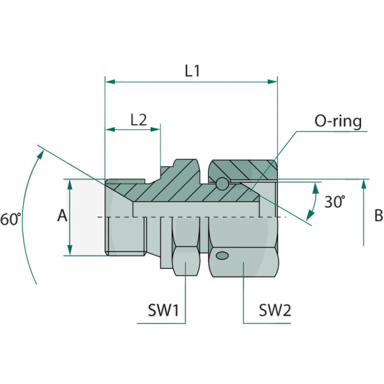 Betegnelse: Rette adapterA (mm):M22 x 1,5B (mm):M22 x 1,5L1 (mm):47Materiale:StålPN (bar):350NB1 (mm):27NB2 (mm):27Overflade:Cr6-friL2 (mm):14