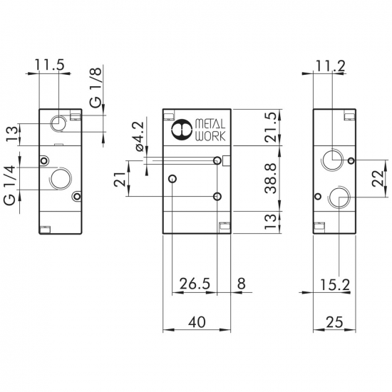 - gevind G 1/4" og G 1/8"