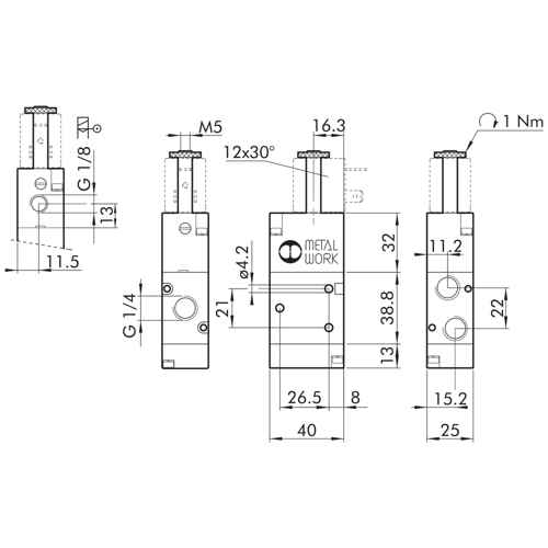 - arbejdstryk 2,5 - 10 bar (monostabil) / 1 - 10 bar (bistabil)