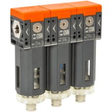 - separerer effektivt væske og faste partikler fra trykluft