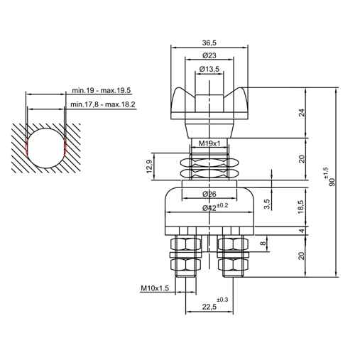 Hovedafbryder 500/100A - fastgørelseshul 19 -20 mm