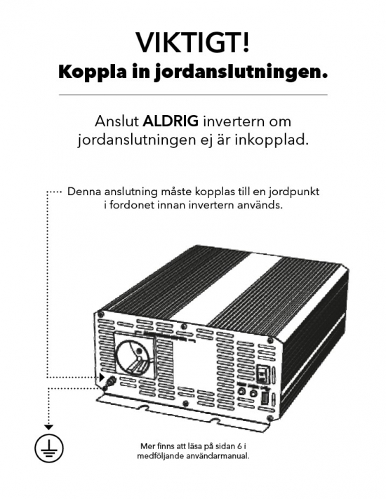Inverter: 1 500 W, DC?AC, 24 V?240 VMonteringsinformationVigtigt! Forbind jordforbindelsen. Tilslut aldrig inverteren, hvis jordforbindelsen ikke er tilsluttet.Oprindelsesland: TWToldkode: 85167920 - I produktgrupper