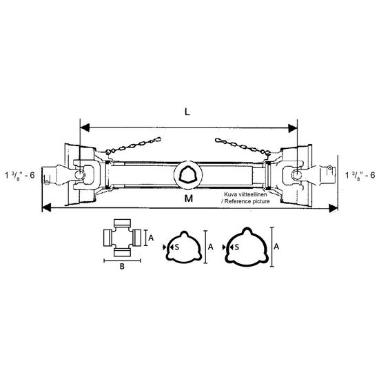 - gaffel traktorside: 1.3/8"-6Z taplåning