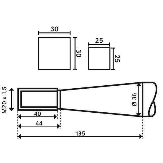 - pigge leveres med møtrikker, gevind M20 x 1,5
