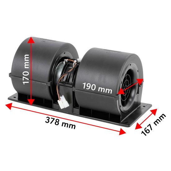 12 VKomplet varmeblæsermotor / kabineblæser med modstand. Blæseren passer bl.a. diverse Case IH og Claas modeller.