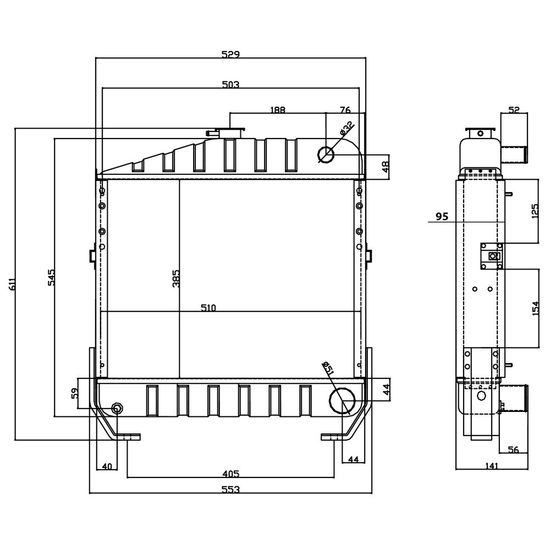 - kølerens højde 545 mm