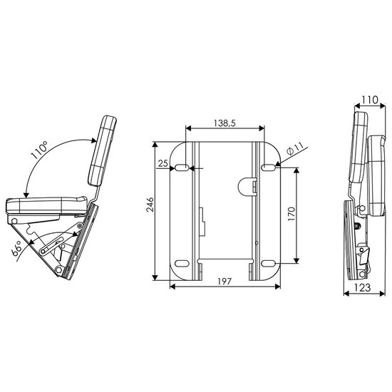 Passagersæde til diverse John Deere-modeller. Praktisk, da det kan foldes sammen for at optage mindre plads i kabinen (bygger kun 123 mm i opklappet position). Sædet er lavet af et slidstærkt og vandafvisende materiale for at sikre lang levetid.