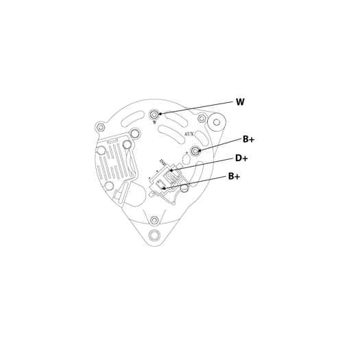 - D-, B- = generatorens jordforbindelse til batteriets - pol/chassis