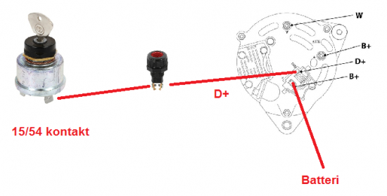 - IND, D+ = aktivering af generator ved ladens signallys