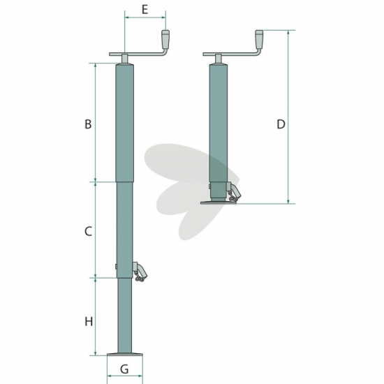 Støtteben til trailer 1000kg, Justering 360mm