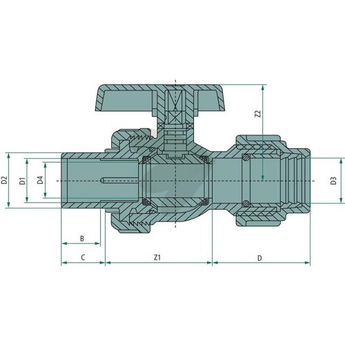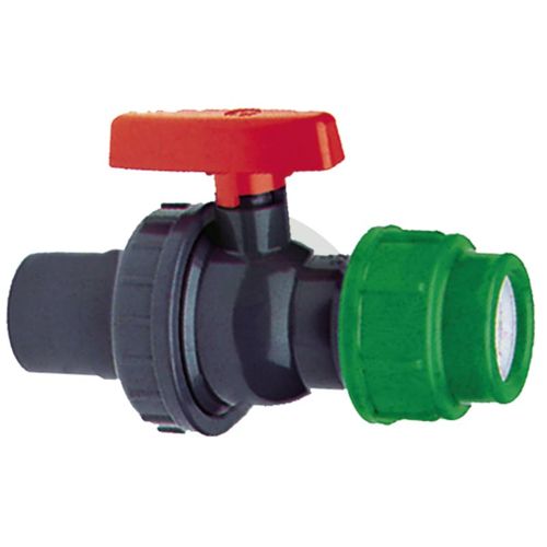 Kugleventil med 1x limbøsning og 1x klemme, PVC-U