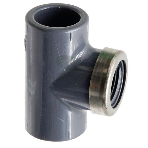 T-stykke med 2x limmuffe og 1x indvendig gevind, PVC-U