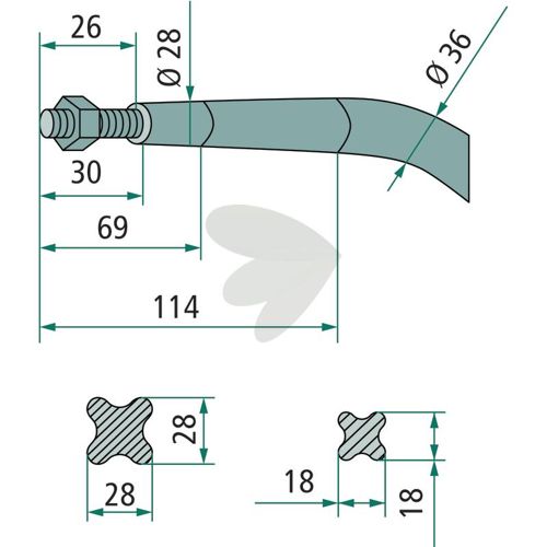 Form: BuetBalspyd med flad møtrik som passer til Strautmann med flere.