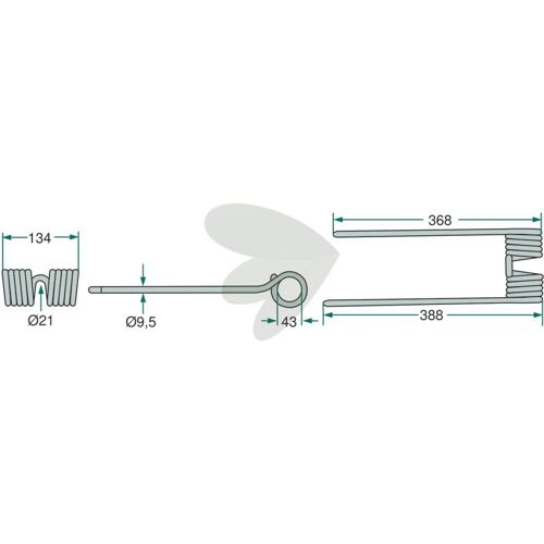 Længde: 388 mmPind til roterende rive grøn som passer til Krone med flere.
