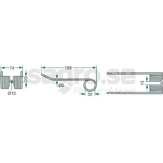 Længde: 189 mmPick-up fjederpinde som passer til Case IH, New Holland med flere.