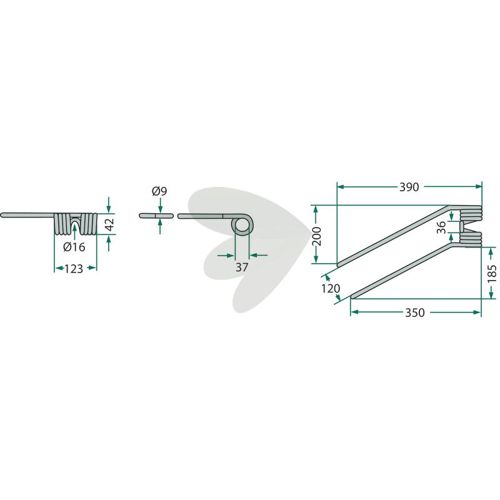 Længde: 390 mmPind til roterende rive venstre grøn som passer til Fella, Morra med flere.