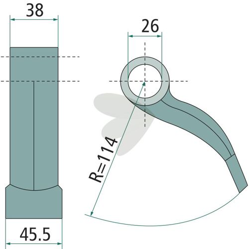 Hammerslag 38/45,5mm, hul 26mm