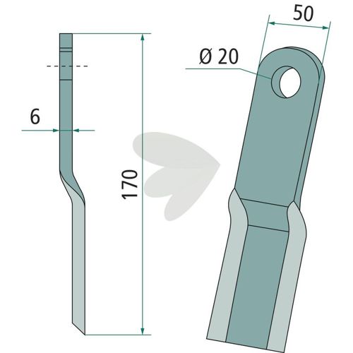 Slagkniv Humus m.fl. 50X170mm hul 20 mm
