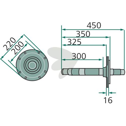 Aksel 450X220mm bredde 16mm