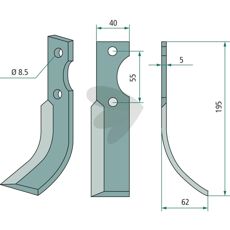 Jordfræserkniv 5x8, 5x40
