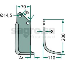 Jordfræserkniv Maletti,Kverneland c-c 45mm hul 14,5mm