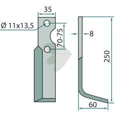 Rotorkniv Simon, højde 250mm Hul 11x13,5mm