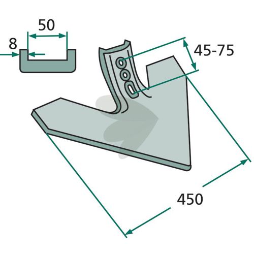 Måle (mm): M10x45, DIN 608, 10.9Gåsefodsskær passende Lemken, John Deere, Köckerling, Lemken Smaragd, Lemken Achat/Thorit, Lemken Topas, Regent m.fl.