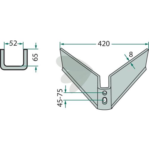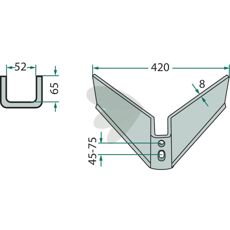 Vingeskær Arbejdsbredde = 420 Arbejdsvinkel = 25°