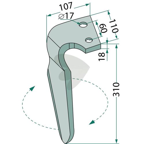 Rotorharvetand Alpego m.fl. 110X310mm hul 17mm