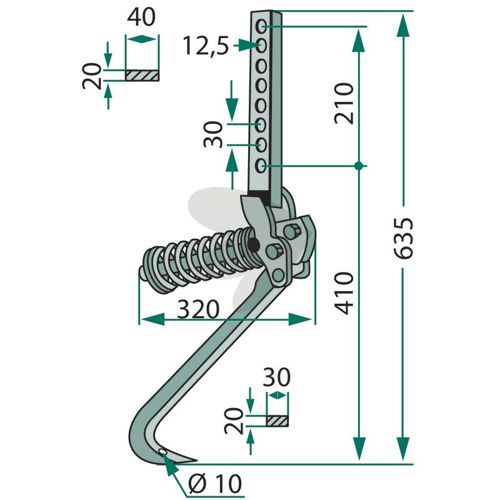 Bolt 32x10mm længde 635mm hul 12,5/10mm
