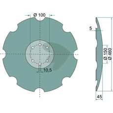 Tallerken tandet Ø460 mm Kuhn 6 fastgørelseshuller