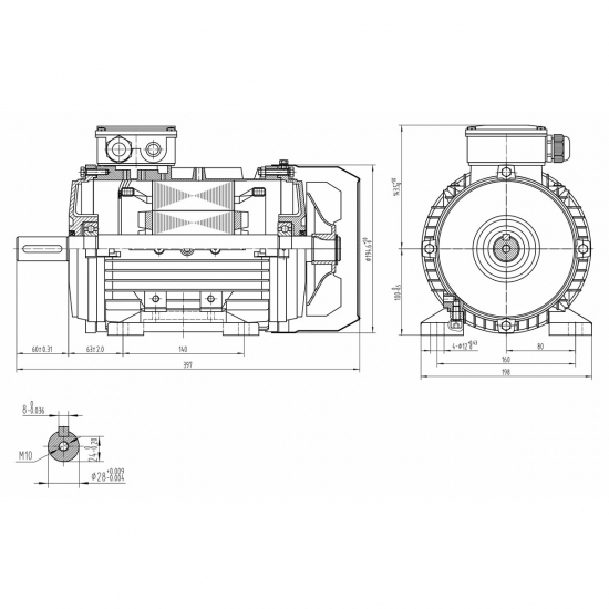 Elmotor 230/400V 4Kw 28X60Mm B3