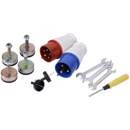 Generatoren er udstyret med ekstra tilbehør: overgangskontakt 2P+PE 16 A 230 V, overgangskontakt 2P+E 32 A 230 V, skiftnøgle 8x10 mm, skiftnøgle 12x14 mm, skiftnøgle 17x19 mm, vinkelmejsel 6.0 mm, PH2.