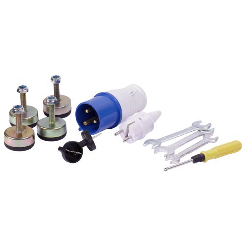 Generatoren er udstyret med yderligere tilbehør: overgangsstik 2P+PE 16 A 230 V, overgangsstik 2P+E 32 A 230 V, skruenøgle 8x10 mm, skruenøgle 12x14 mm, skruenøgle 17x19 mm, vinkelskrue 6.0 mm, PH2.