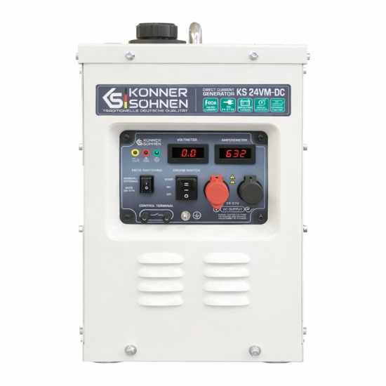 Effekt (kW): 1,6Den 60A (24–27,5V) konstantspændingsgenerator fra det tyske mærke Könner & Söhnen® er en kraftig og pålidelig reserveoplader til 24V-batterier. DC-opladning er meget effektiv, kræver ingen ekstra spændingsomformning og sparer brændstof sammenlignet med AC-generatorer. Den har AUTO-tilstand som fungerer som oplader samt MANUEL/EKSTERN tilstand til manuel eller ekstern start. Det robuste metalkabinet reducerer støj og beskytter mod skader. Enheden er også udstyret med et overvågningssystem.