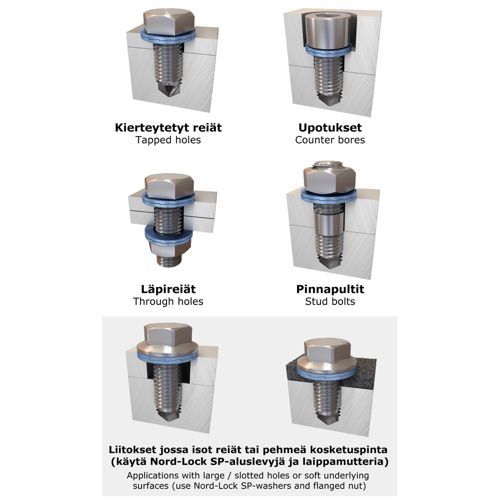 - låseskiverne låser sikkert skrueforbindelser, der udsættes for vibrationer og dynamisk belastning