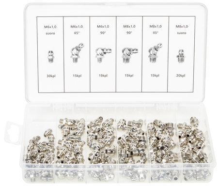 LagerstatusArtikelnummerX008113ProducentEgenskaberSatsen indeholder 110 stk forskellige fedtnipler: DIN-71412